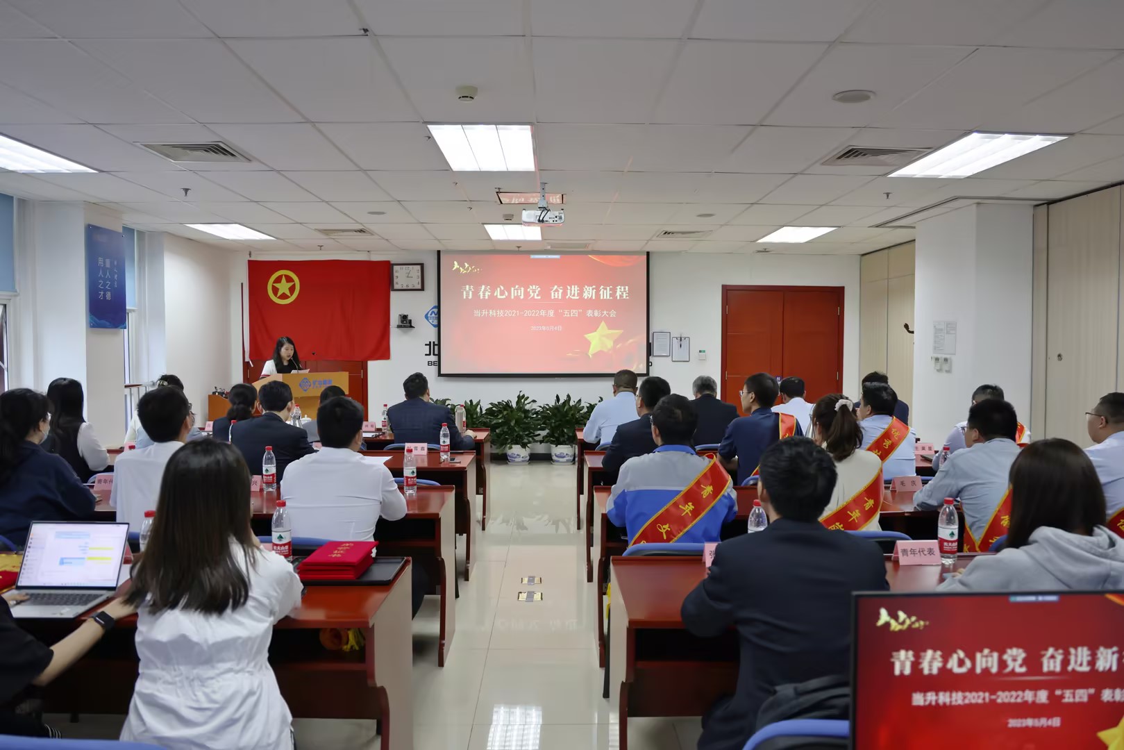 會議在《何以青年》的激昂旋律中圓滿落幕。公司管理層、黨委辦公室、人力資源部負責人,受表彰的優秀集體和個人代表,公司團總支委員及二級單位團組織委員、團員青年共70余人參加會議。