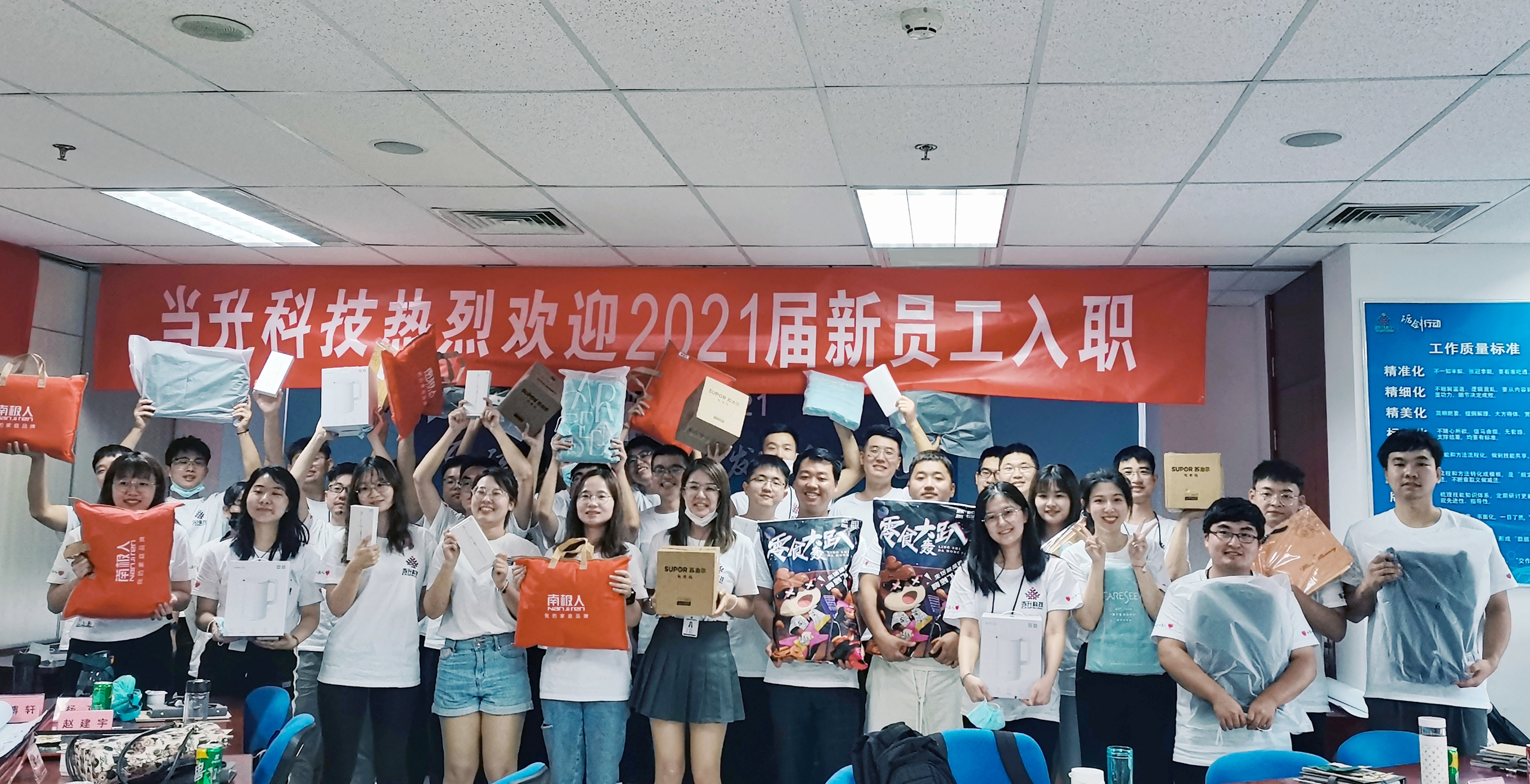 公司為每名新員工精心準備“入職大禮包”。定制可樂、定制文化衫、學員手冊、勞保用品等等,每一份心意都代表著對新同事的期待與歡迎。